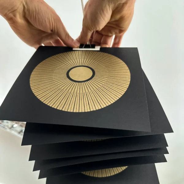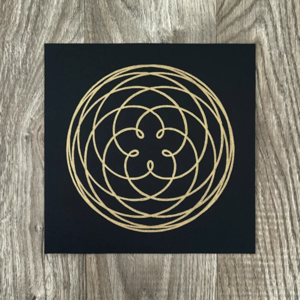 Die „Rose of Venus“ auf schwarzem Papier ist eine Hommage an die geheimnisvolle Schönheit des Kosmos. Die geometrische Struktur, die