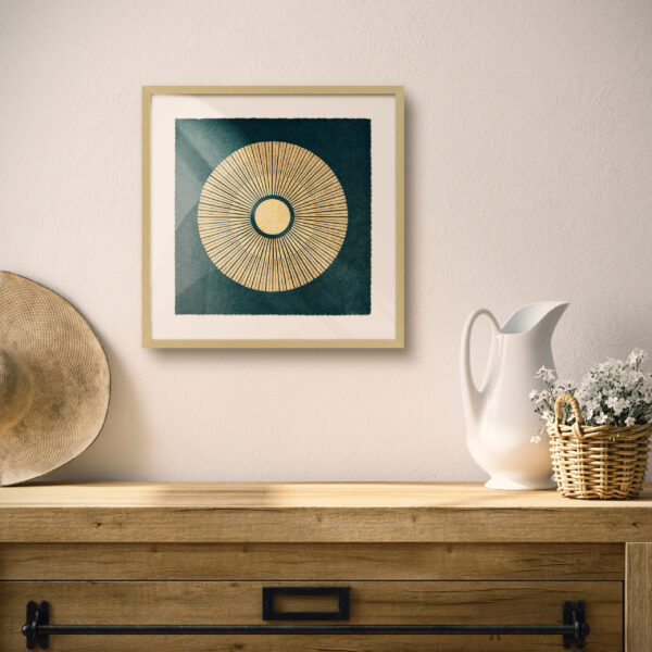 Linoldruck, 40 x 40 cm, Gold auf Grün
