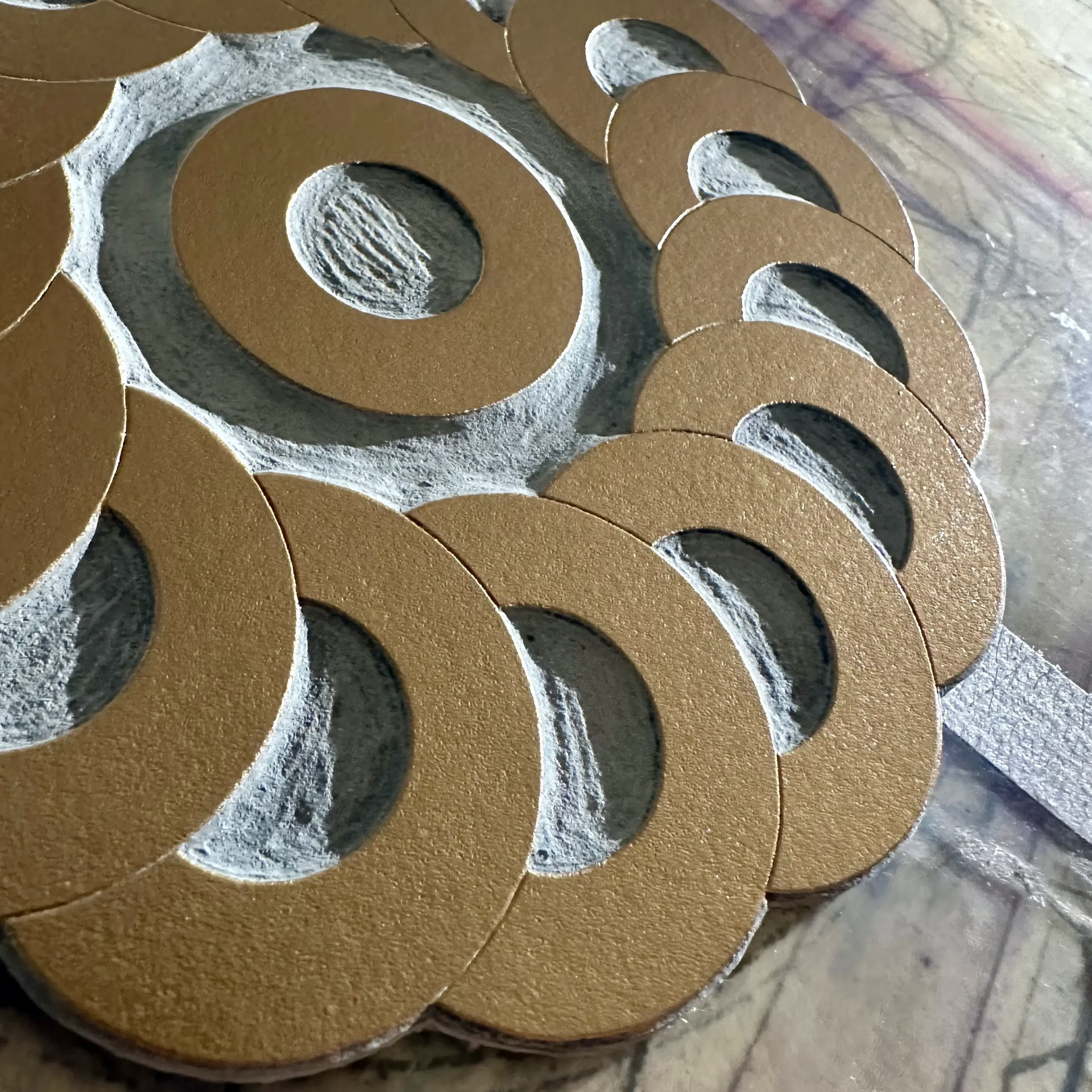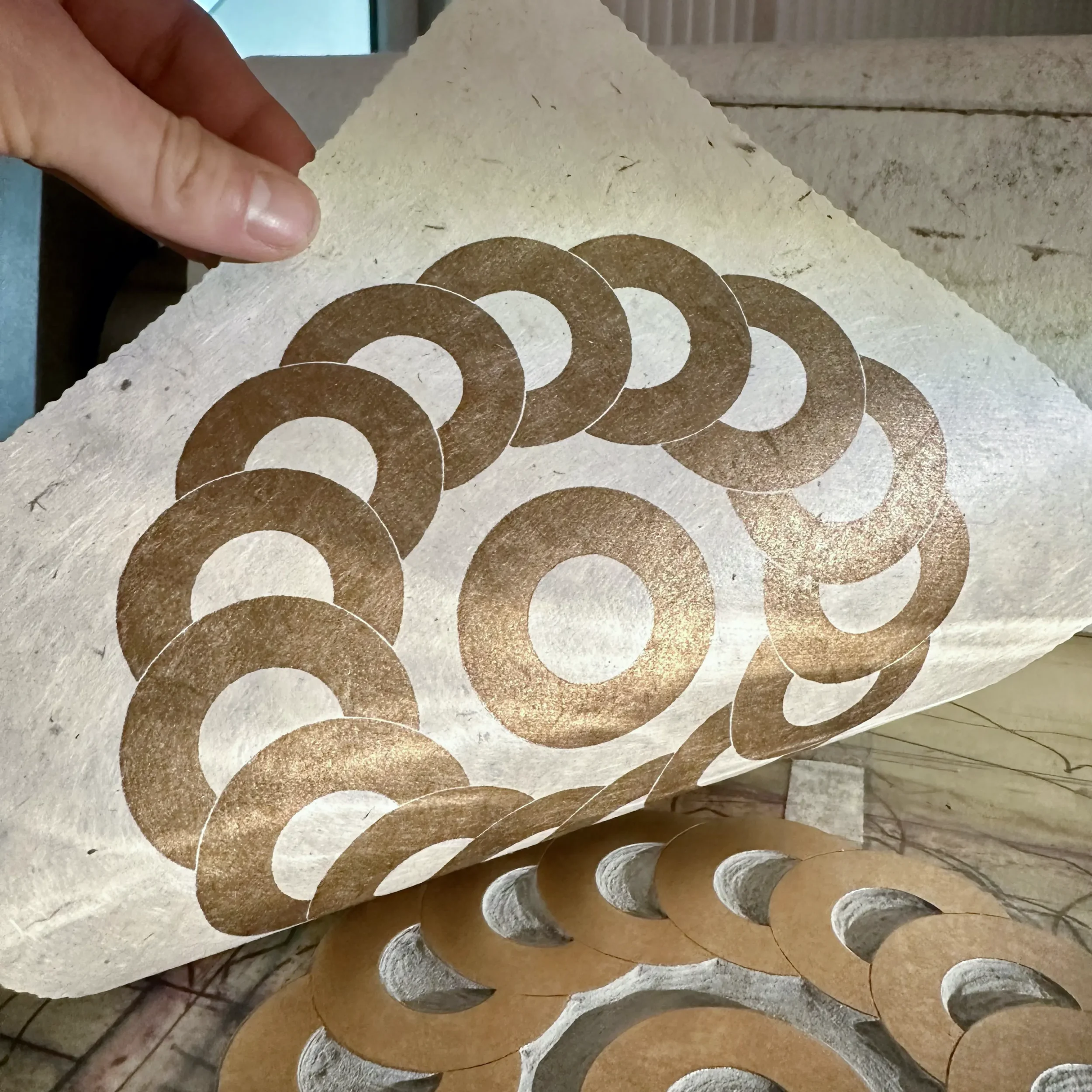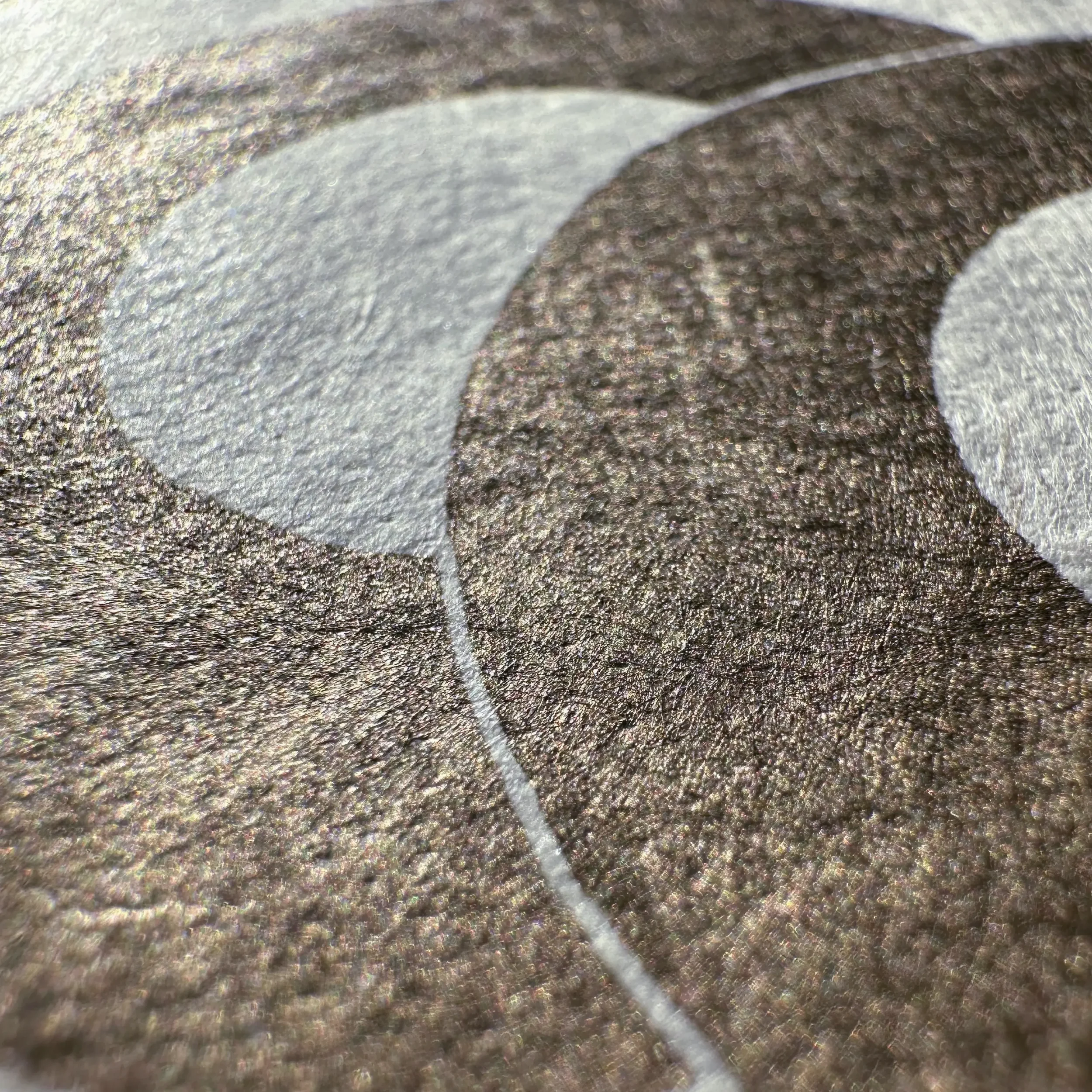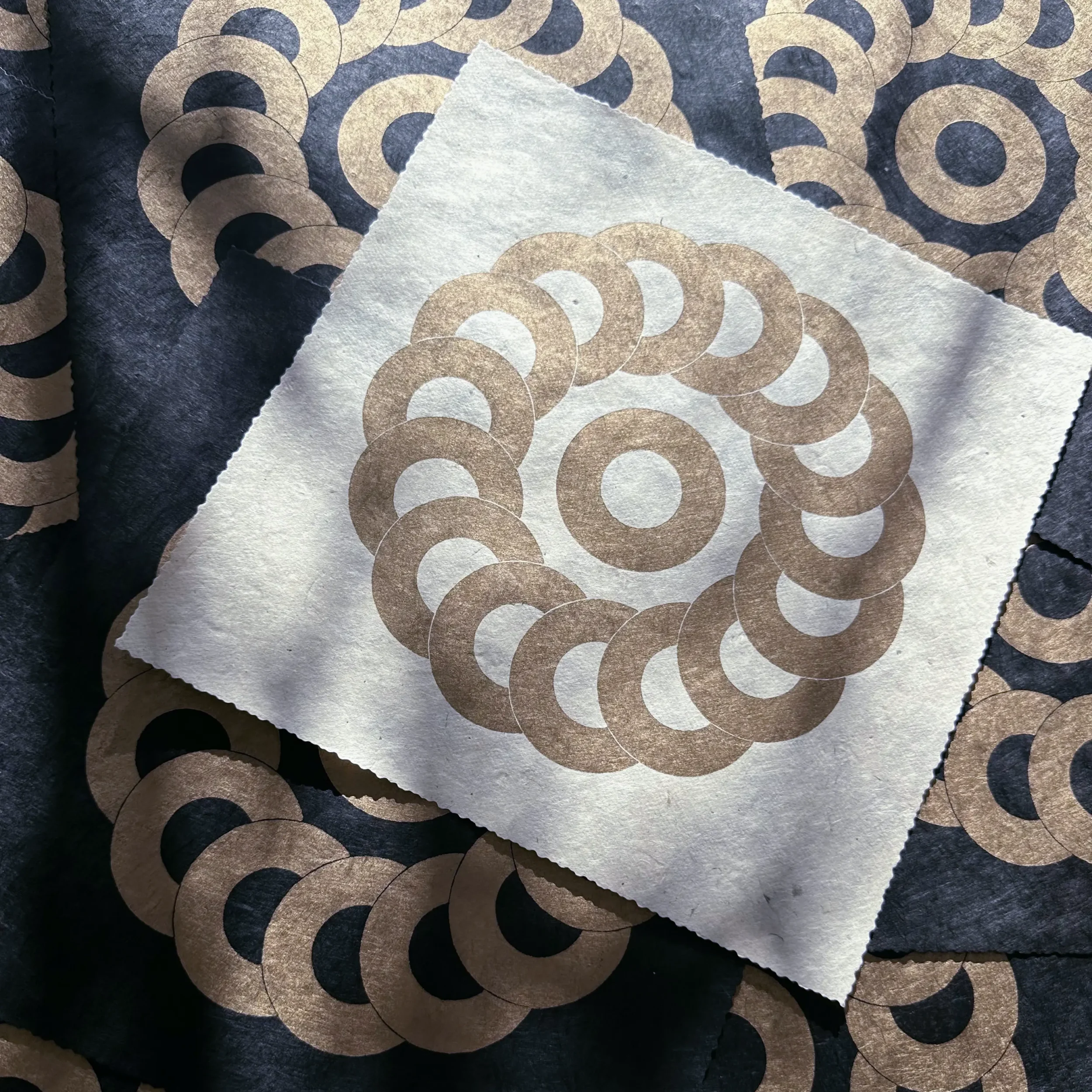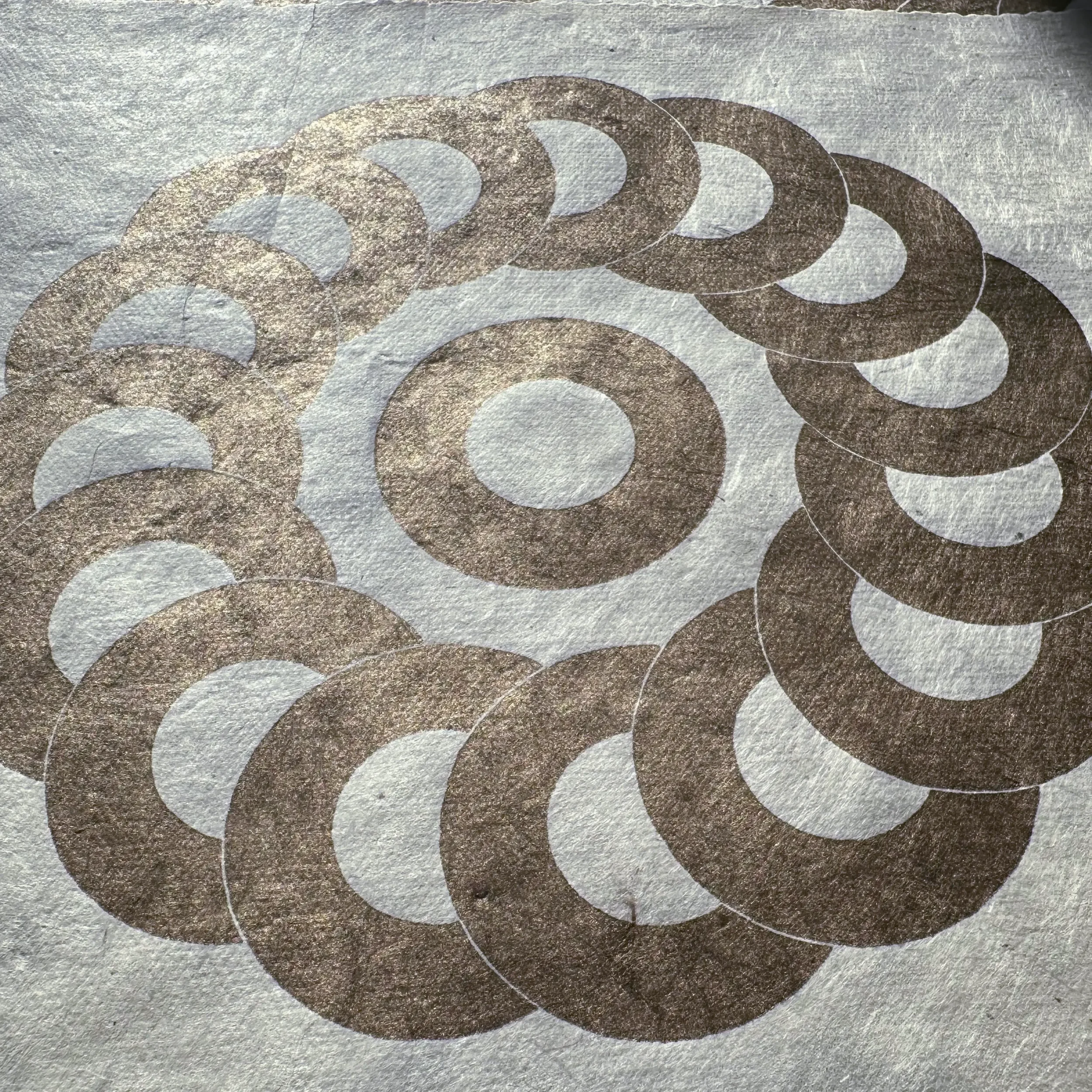 In dieser hellen Edition verwende ich naturbelassenes, helles Loktapapier (60 g/m²), das in traditionellen Papierdörfern des Himalayas handgeschöpft wird. Die zarte, fast transparente Anmutung des Papiers bildet einen edlen Kontrast zur goldenen Hochdruckfarbe auf Ölbasis. Durch die natürliche Faserstruktur des handgeschöpften Trägers wird jeder Abzug zu einem echten Unikat, das eine Atmosphäre von Klarheit und Licht ausstrahlt.