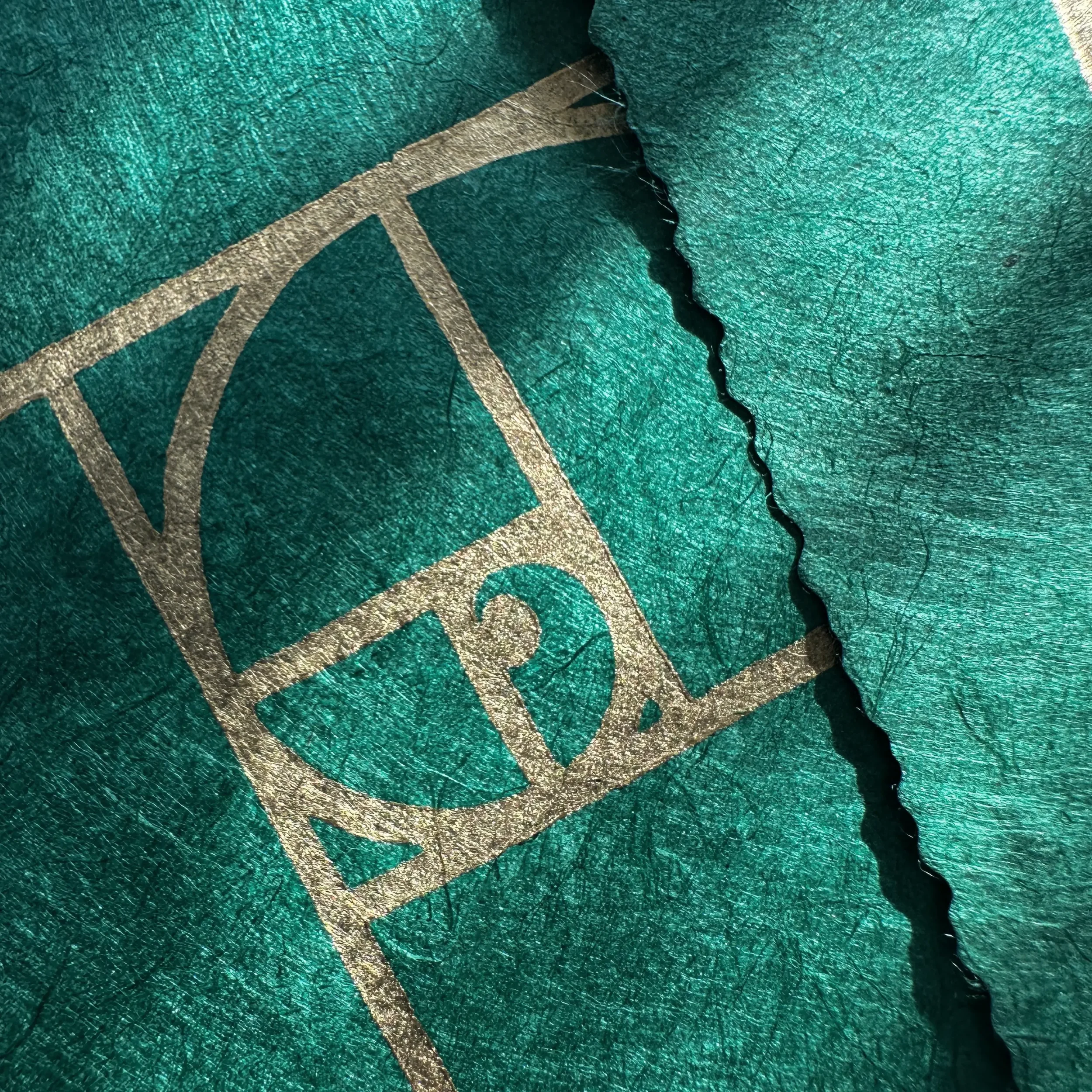 Für diese Edition trifft ein satter, warmer Goldton auf ein tiefes, lebendiges Smaragdgrün. Die hochwertige Hochdruckfarbe auf Ölbasis verleiht dem Motiv eine feine Haptik und beständige Leuchtkraft. Als Träger dient handgeschöpftes Loktapapier aus dem Himalaya, das nachhaltig aus der Rinde des Seidelbasts gewonnen wird. Seine faserige Textur sorgt dafür, dass das Licht bricht und das Gold je nach Blickwinkel unterschiedlich schimmert.