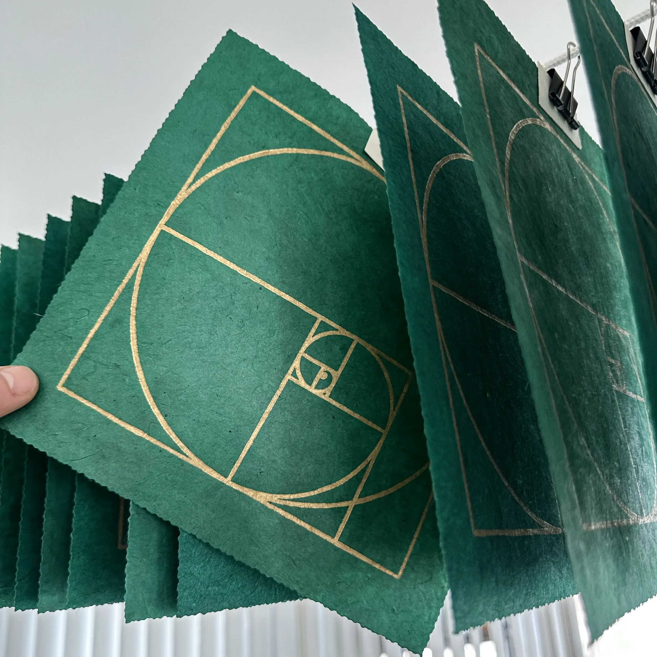 Die Fibonacci-Sequenz offenbart die unsichtbare Ordnung und die tiefgreifende Schönheit, die unserer Natur zugrunde liegt. In diesem Linoldruck habe ich das Prinzip des Goldenen Schnitts visualisiert – eine Spirale, die sich in vollkommener Harmonie entfaltet. Ob in Farnen, Pinienzapfen oder Galaxien: Dieses Muster begegnet uns überall als Symbol für unendliches Wachstum und ästhetische Perfektion.