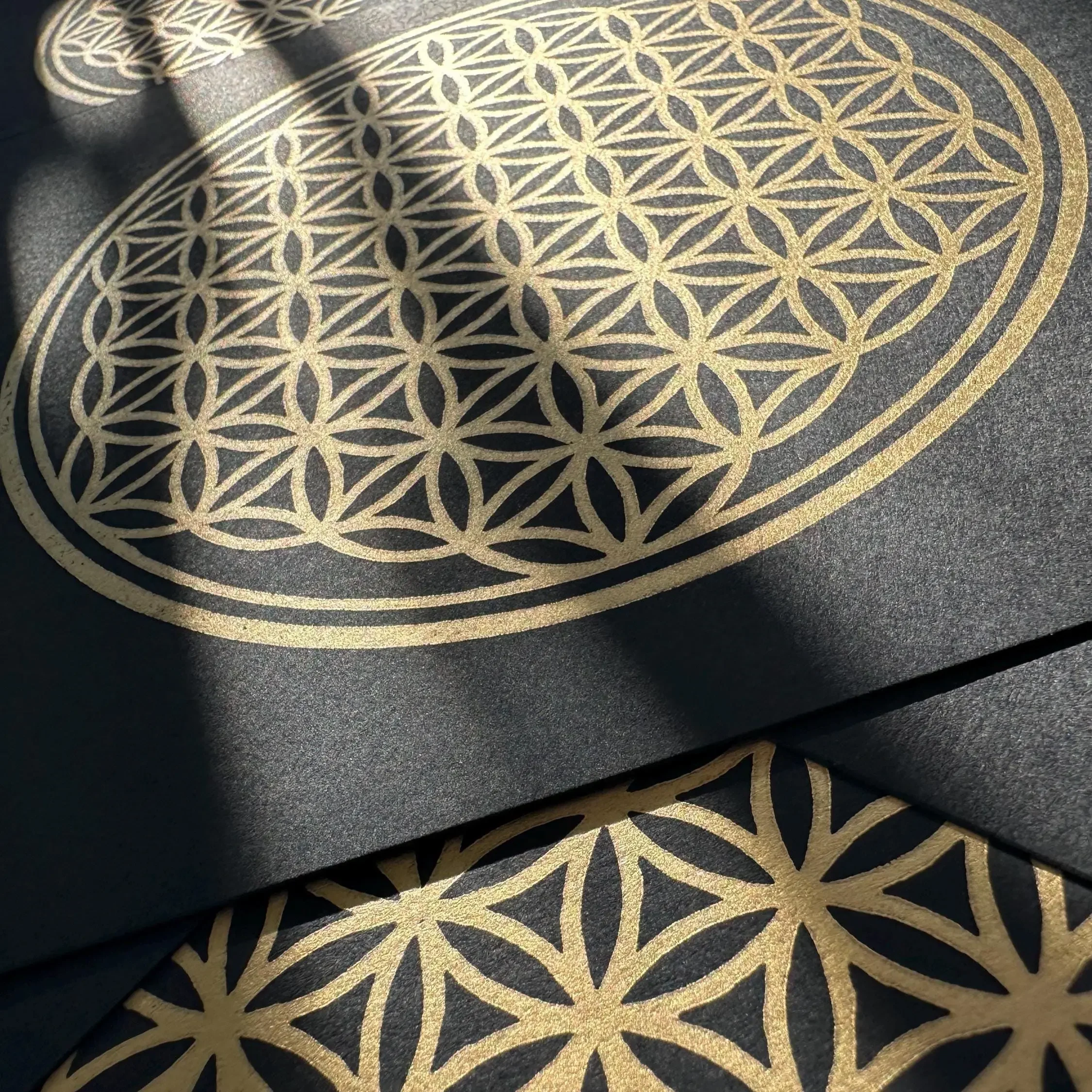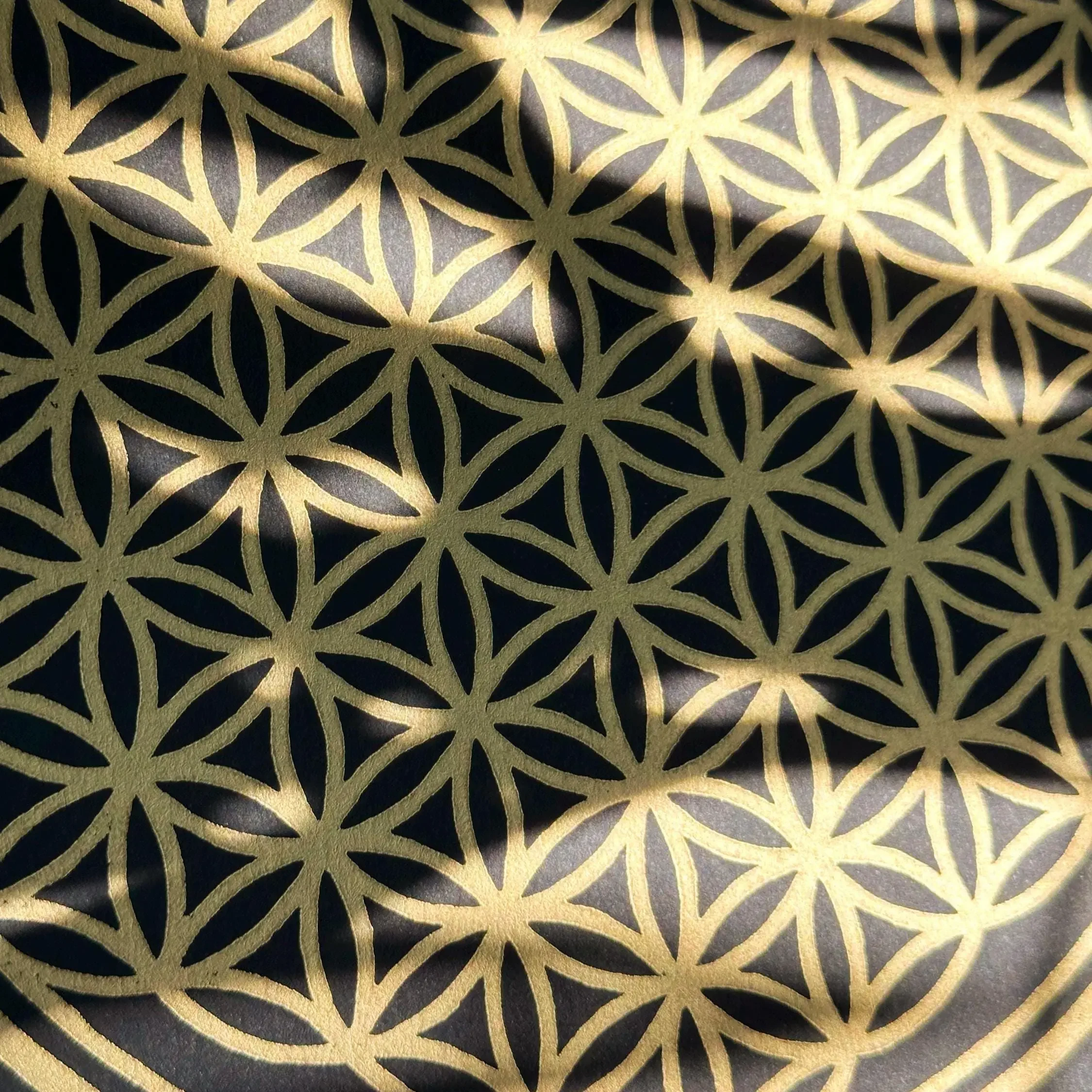 Eingefangen in vollendeter Geometrie, repräsentiert die Blume des Lebens II den Moment der Schöpfung und den ewigen Kreislauf des Lebens. Dieses Symbol bringt eine energetische Tiefe in deine Räume, die zur Kontemplation und Zentrierung einlädt.