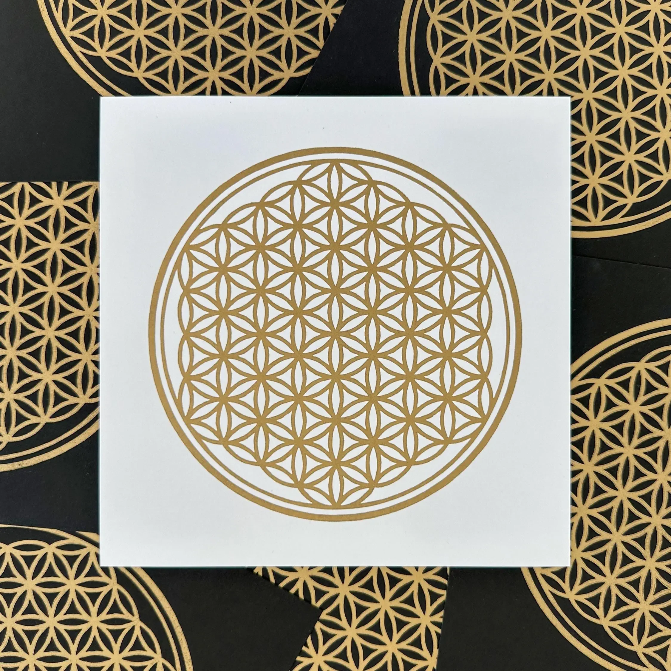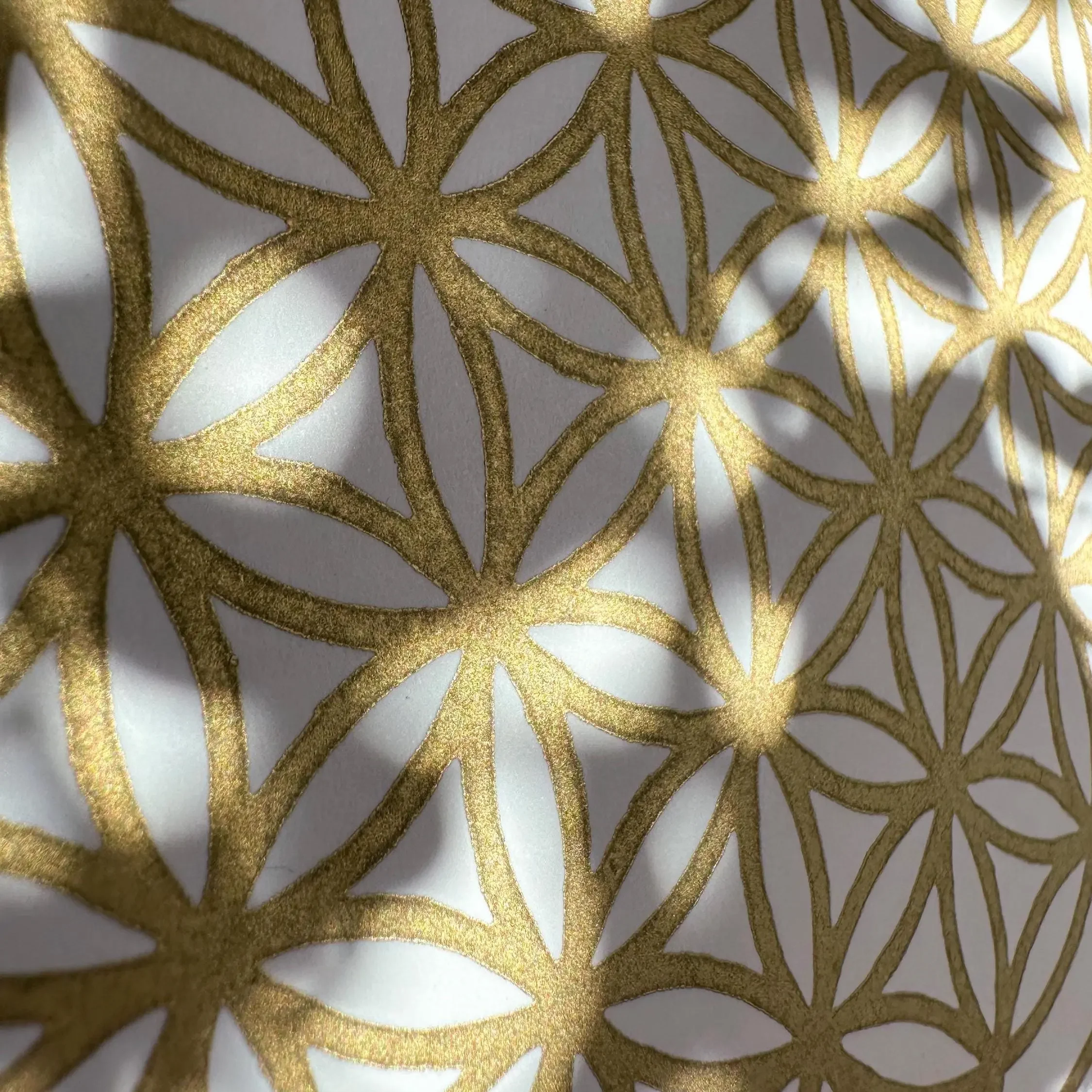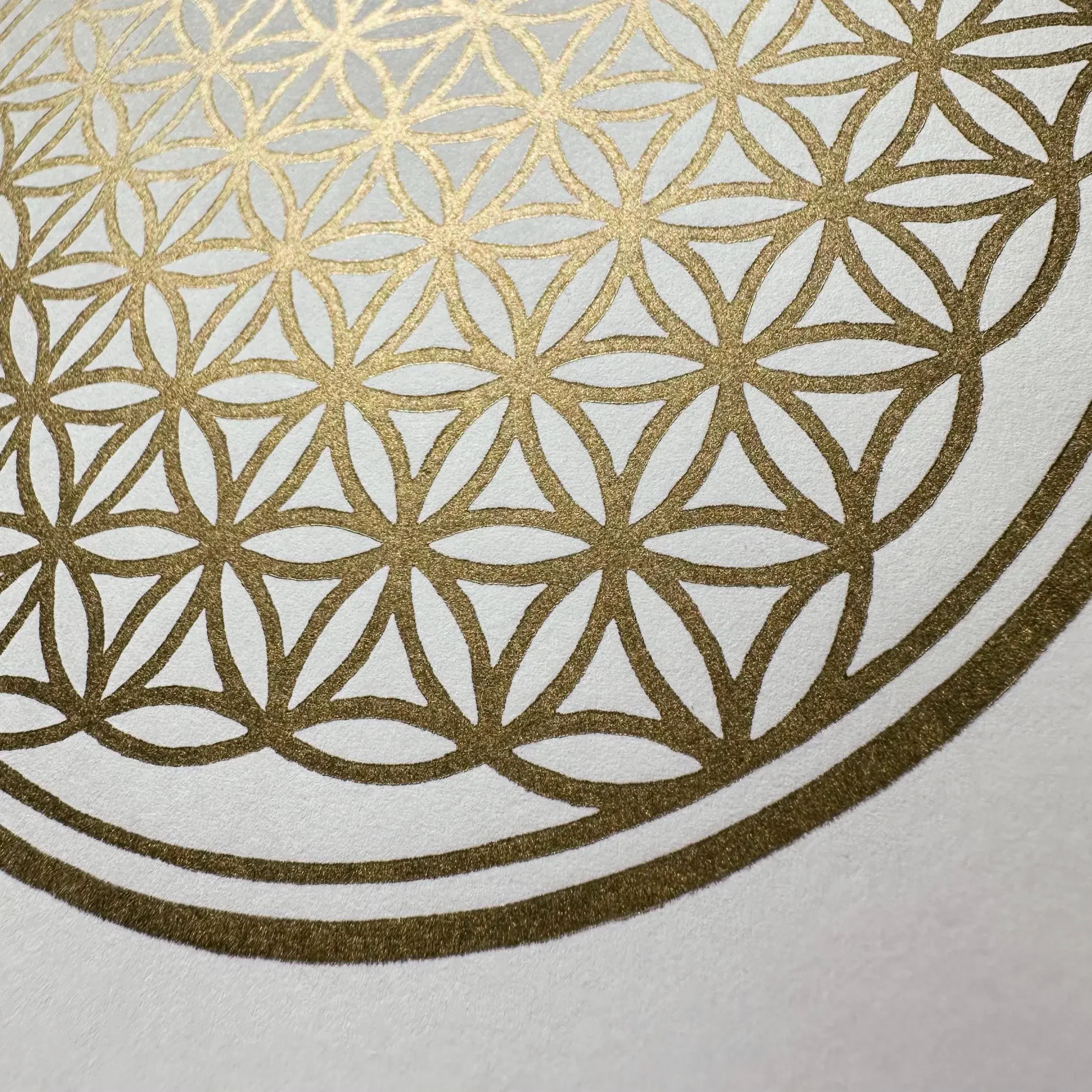 Die Blume des Lebens II ist eine Hommage an die Unendlichkeit und die vollkommene Struktur unserer Existenz. Als eines der geschichtsträchtigsten Symbole erinnert es uns an unsere Wurzeln und die harmonische Balance im Kosmos.